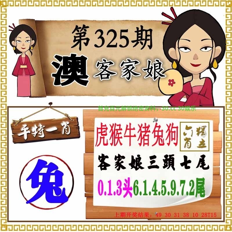 | 325期:客家娘心水 325期:【客家娘必中六肖】虎猴牛猪兔狗 325期:【客家娘三头七尾】031头-5976142尾 |